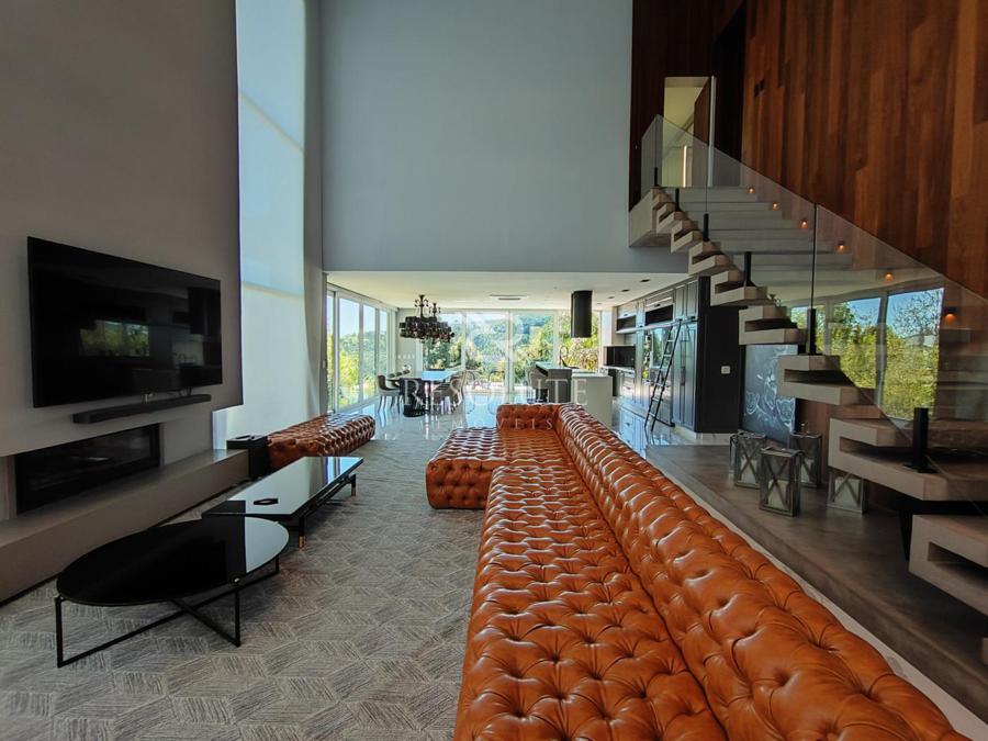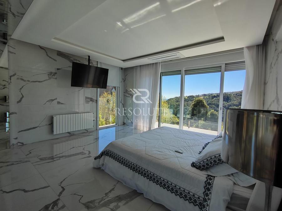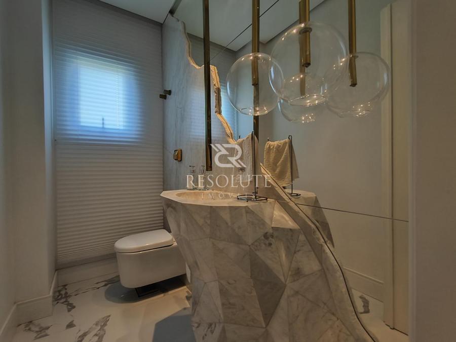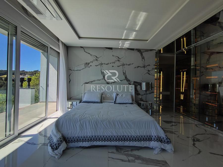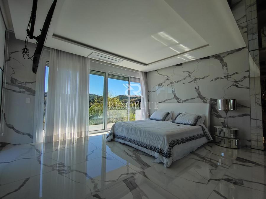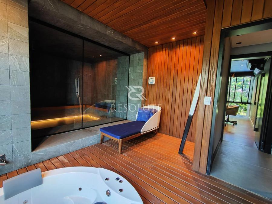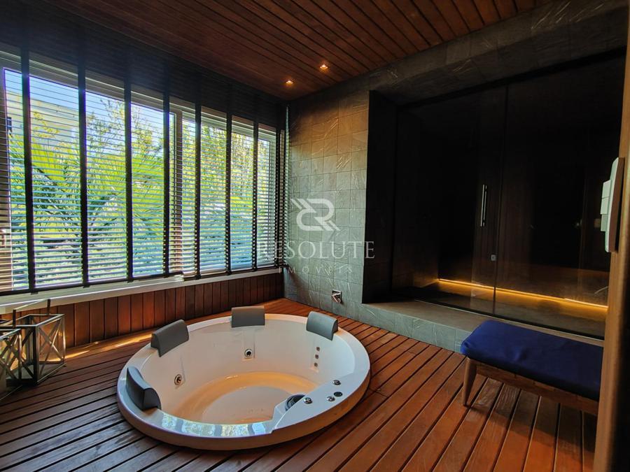 A área social é ampla e integrada, com sala de estar de pé-direito duplo (7,5 m), TV de 85 polegadas, cozinha americana e espaço gourmet perfeito para receber. Para momentos de lazer e relaxamento, a casa conta com sala de jogos e carteado, adega climatizada, sala de cinema, sauna úmida, ofurô e uma piscina com borda infinita equipada com aquecimento solar.