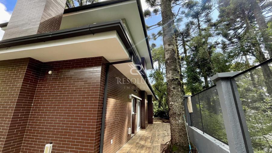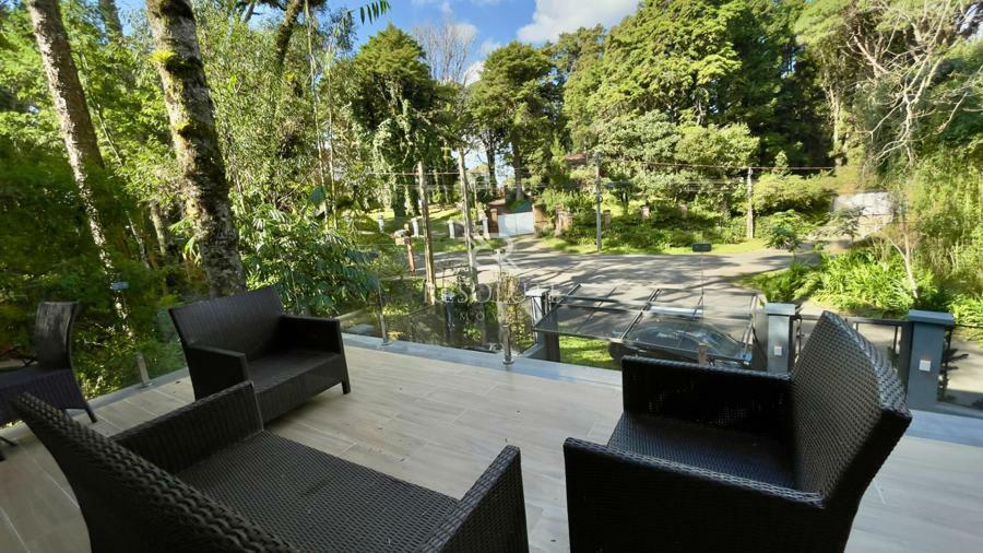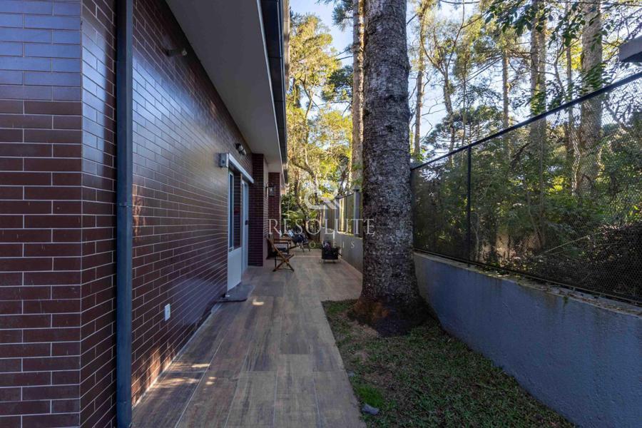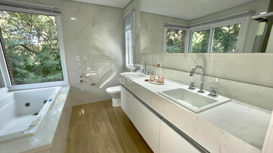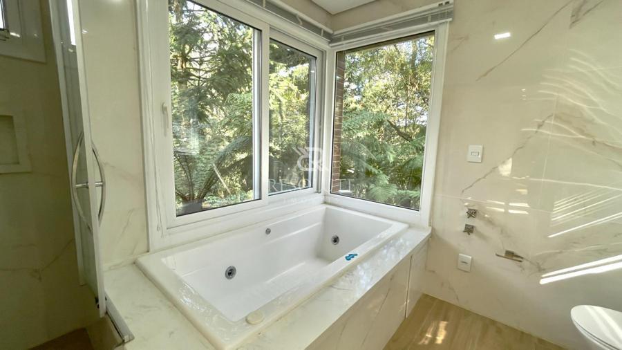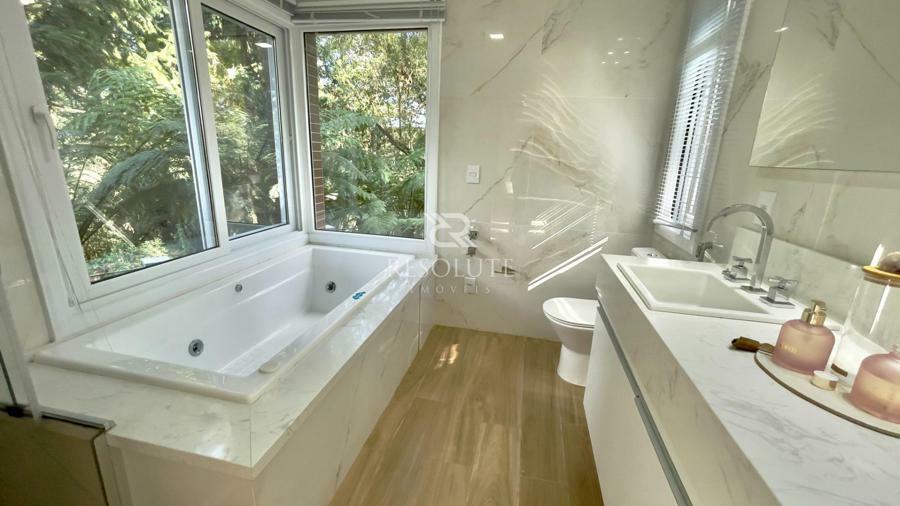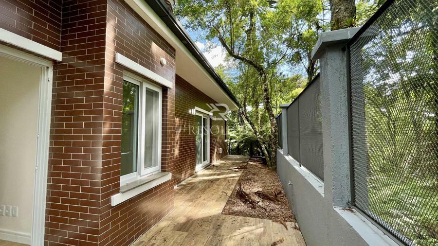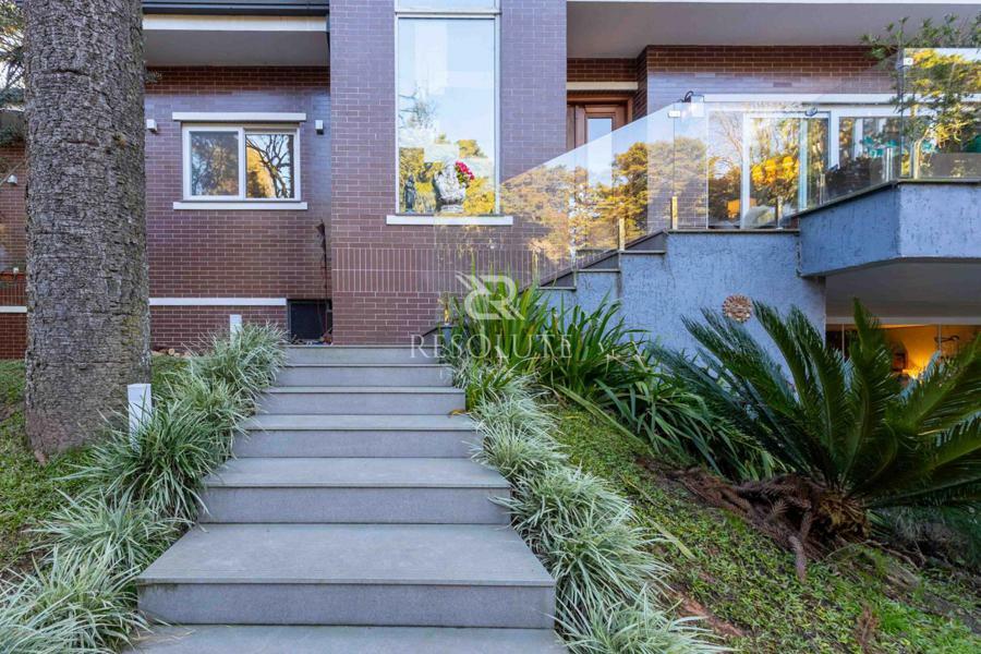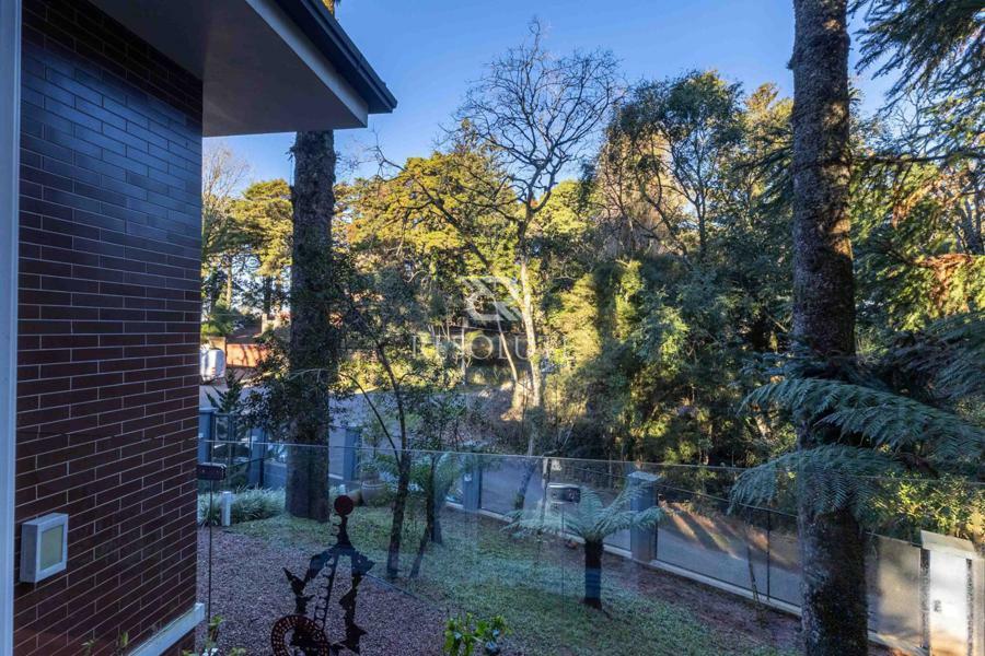 Acima do nível da rua se encontra esta belíssima residência, em estilo inglês com 280,00 m² de área privativa, 4 dormitórios sendo 3 suítes, sendo uma americana, sala de TV, hall de entrada, sala de estar, cozinha com churrasqueira e espaço gourmet, ampla varanda com vista para a natureza, adega, garagens para 4 carros, esquadrias em PVC, piso aquecido, tudo isso em um terreno de 560,00 m². Nas redondezas do terreno se encontra trilhas com muitos xaxims, folhagens e plantas nativas.