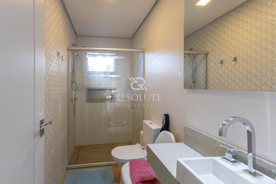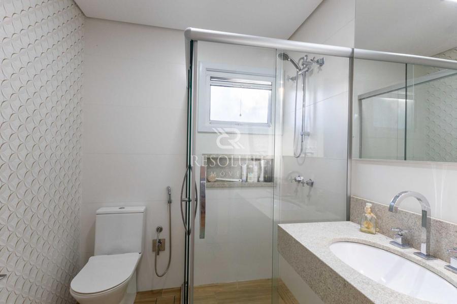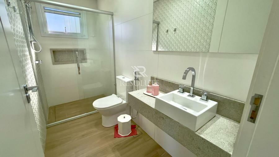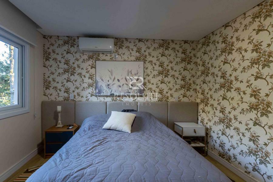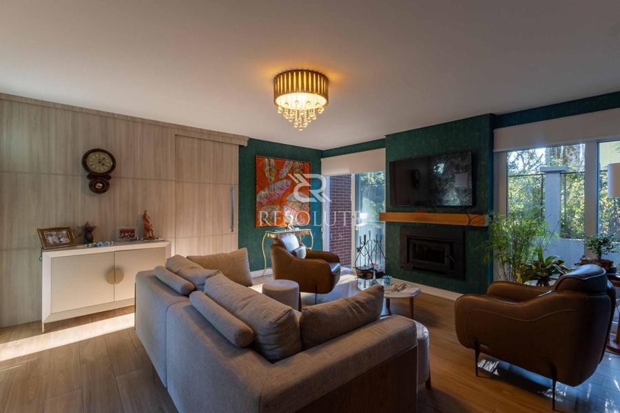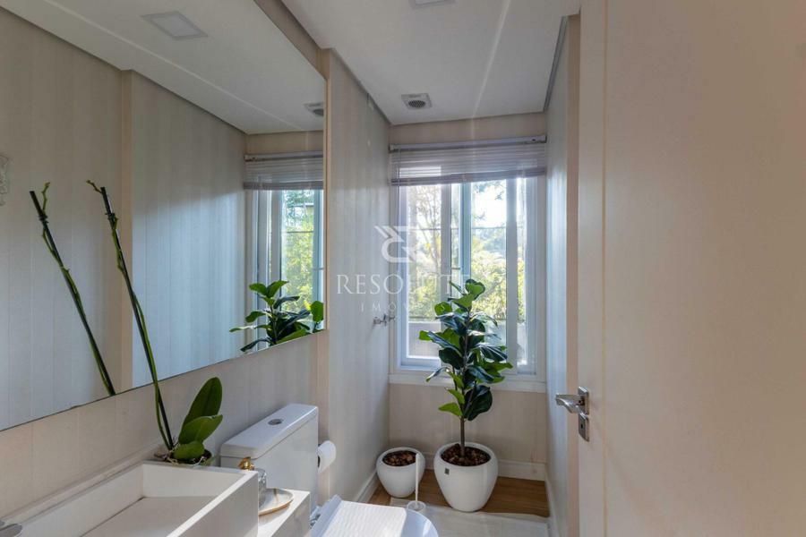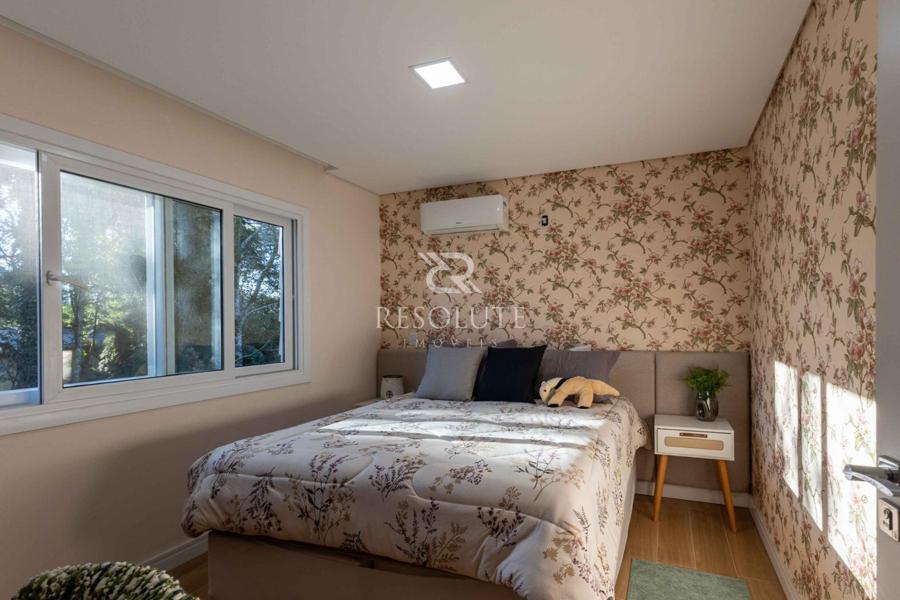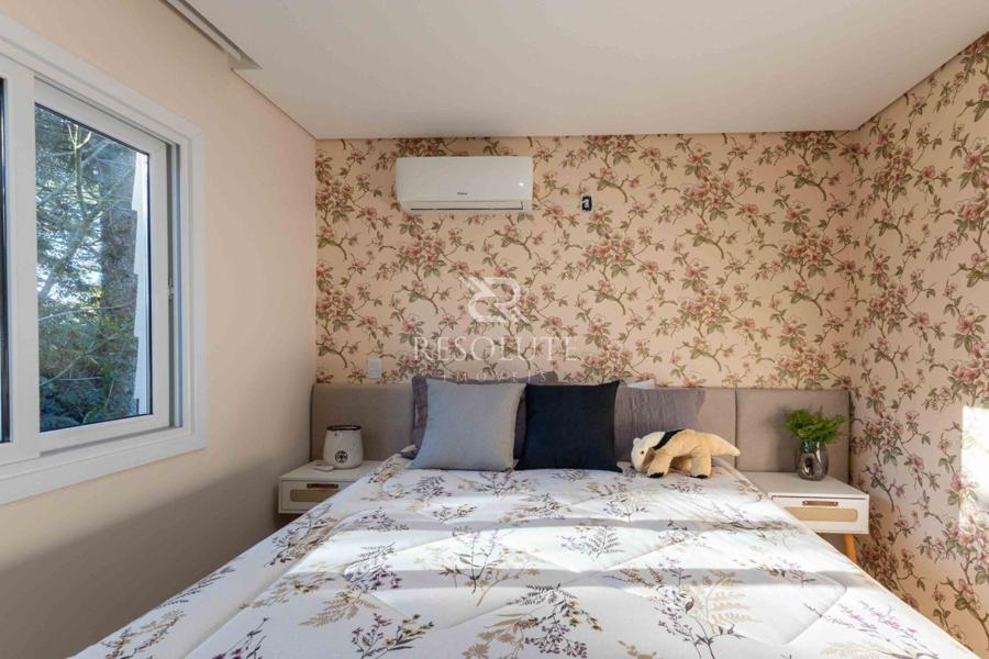 Acima do nível da rua se encontra esta belíssima residência, em estilo inglês com 280,00 m² de área privativa, 4 dormitórios sendo 3 suítes, sendo uma americana, sala de TV, hall de entrada, sala de estar, cozinha com churrasqueira e espaço gourmet, ampla varanda com vista para a natureza, adega, garagens para 4 carros, esquadrias em PVC, piso aquecido, tudo isso em um terreno de 560,00 m². Nas redondezas do terreno se encontra trilhas com muitos xaxims, folhagens e plantas nativas.
