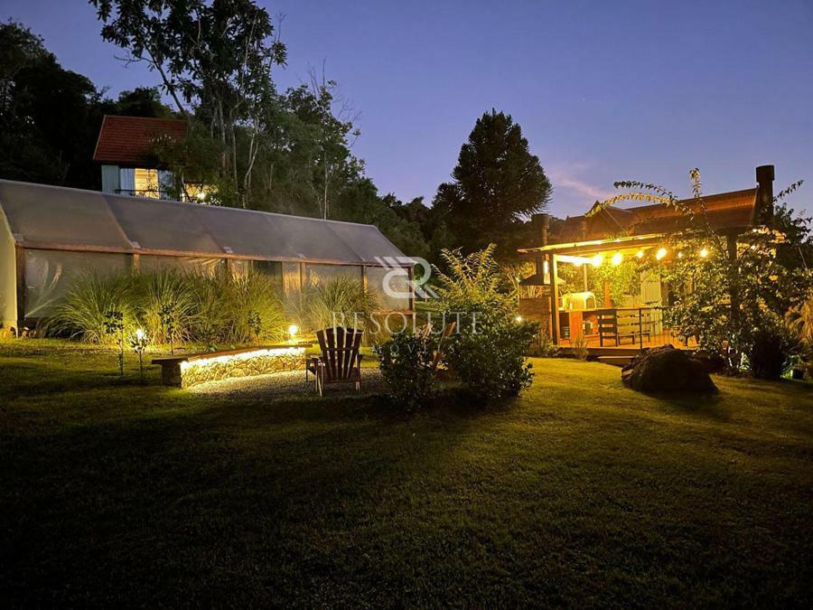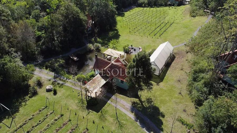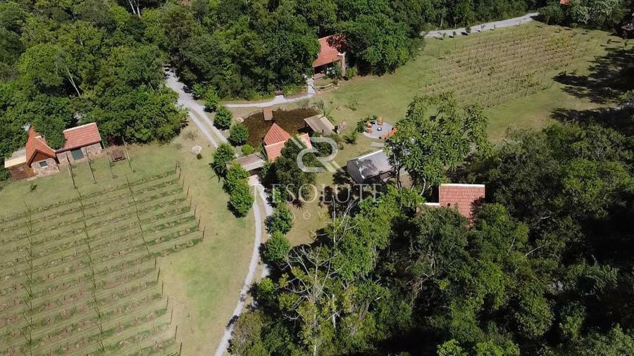 A propriedade possui 03 hectares com linda vista, mata nativa preservada, trilhas iluminadas, vinhedos em formação, árvores frutíferas, lago, espaço gourmet completo com Parrilla Uruguaia junto a Bodega (armazém com produtos rurais), estufa, casa de pedra e pequeno galpão.