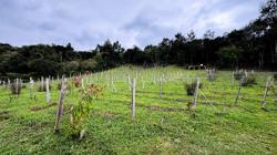 - Vinhedo implantado da variedade Riesling com aproximadamente 0,5ha (1300 pés) no sistema de espaldeira. -