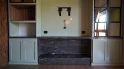 A área social integra cozinha com móveis planejados, churrasqueira e living com lareira, criando um ambiente acolhedor para receber amigos e família, banho social para apoio, além de um mezanino que amplia as possibilidades de uso do imóvel.