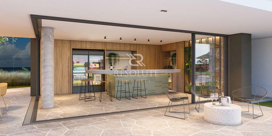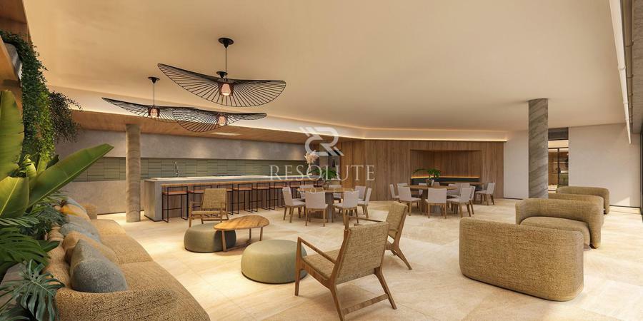 Salão gourmet com churrasqueira e apoio, bar piscina com cozinha de apoio e depósito, Lounge coberto externo, vestiários, fitness, espaço kids, salão de jogos, escada de acesso ao mirante.